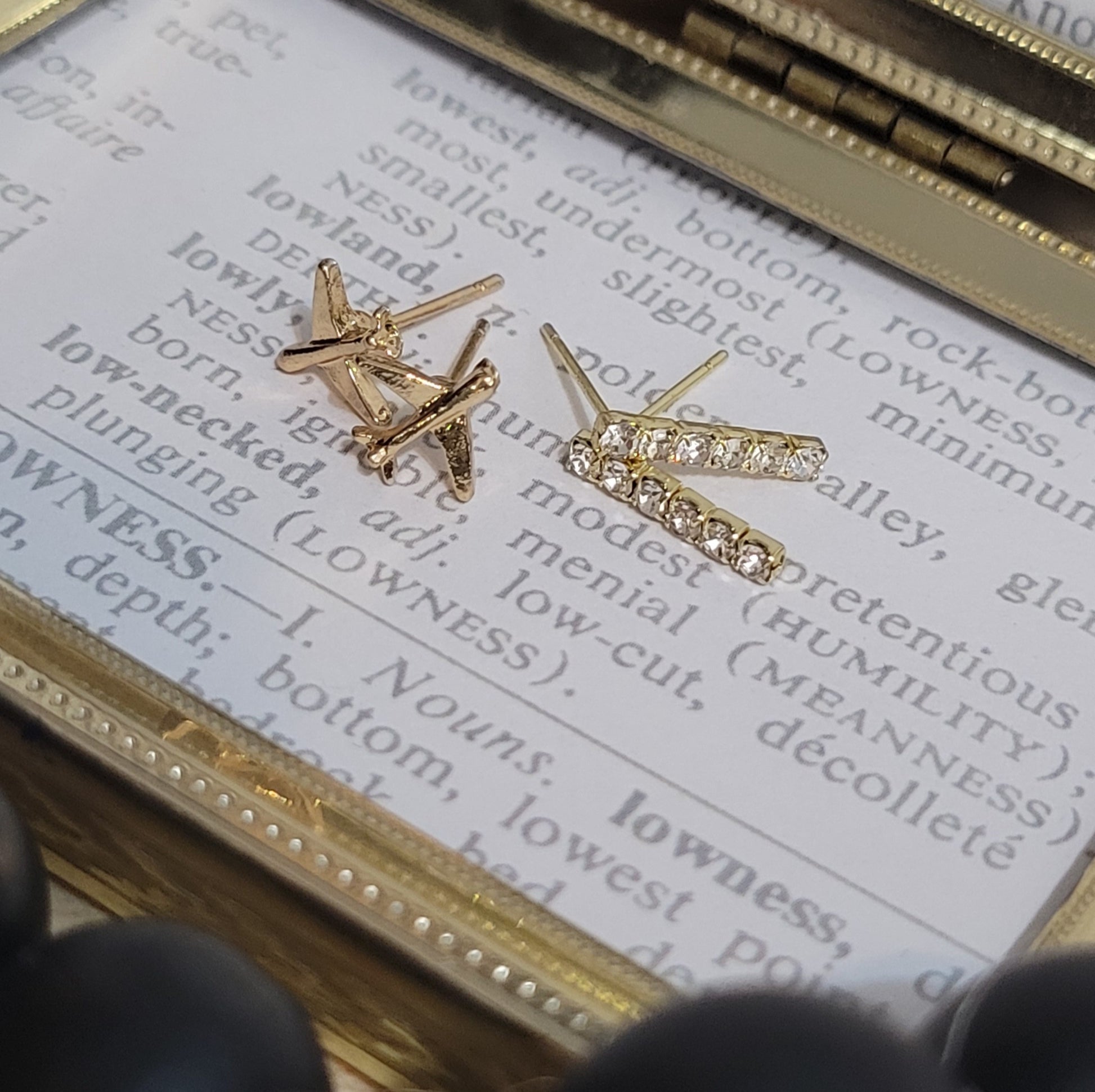 Elevate your accessory game with a combination of gold-plated stainless steel airplane studs & jeweled bar studs.   Add a touch of personal charm to your jewelry box with this whimsical set of earrings.  this combination of studs allows you to switch between casual and a dressier style effortlessly.