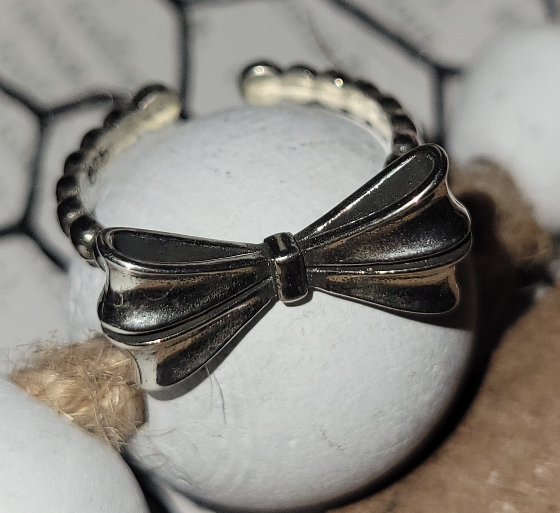 Elevate your style with an adjustable ring featuring a braided band & large bow of 925 sterling silver. This eye-catching silver beauty combines intricate design with timeless ease. Adjustable feature ensures a comfortable fit for any finger. The large bow adds a touch of elegance to both casual and formal attire, making this a must have for your jewelry box.