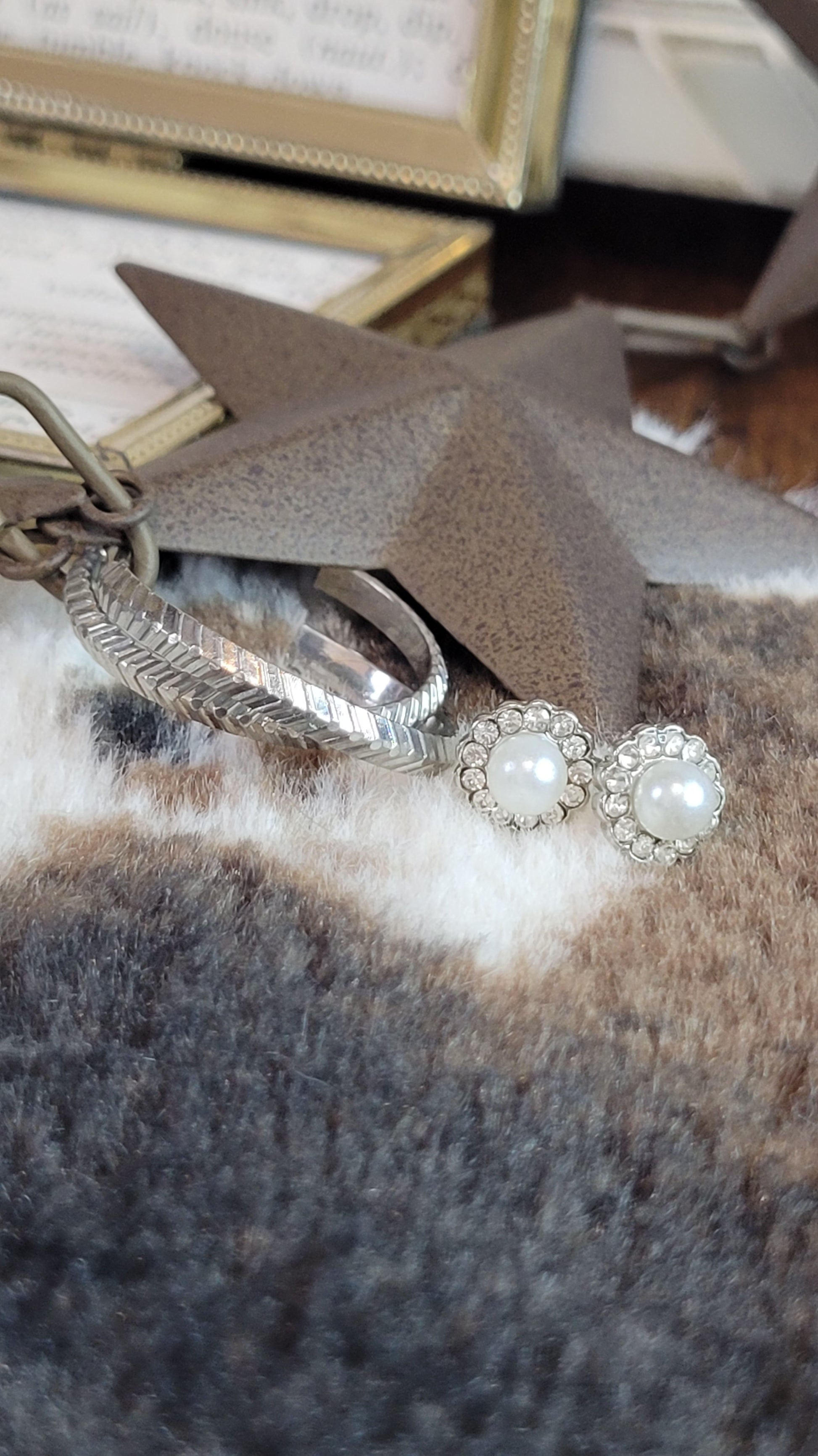 Jeweled pearl studs & sterling silver hoops create a dynamic earring combination that offer both classic elegance and contemporary flair. This set offers versatility with lustrous pearls surrounded by sparking gemstones, perfect for any formal occasion while the designed hoops bring a modern element of shape & patten for a stylish eye-catching casual or dressier look.