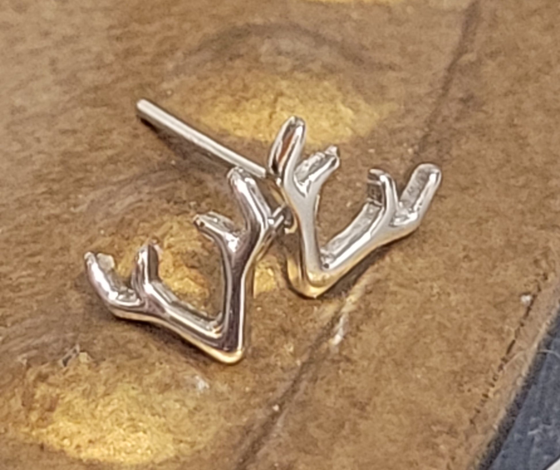 Sterling silver antler studs offer a unique & nature-inspired addition to your jewelry box. Studs feature antler925 sterling silver. their subtle yet distinctive design allows them to be worn with a various outfits and styles, making them a versatile accessory.