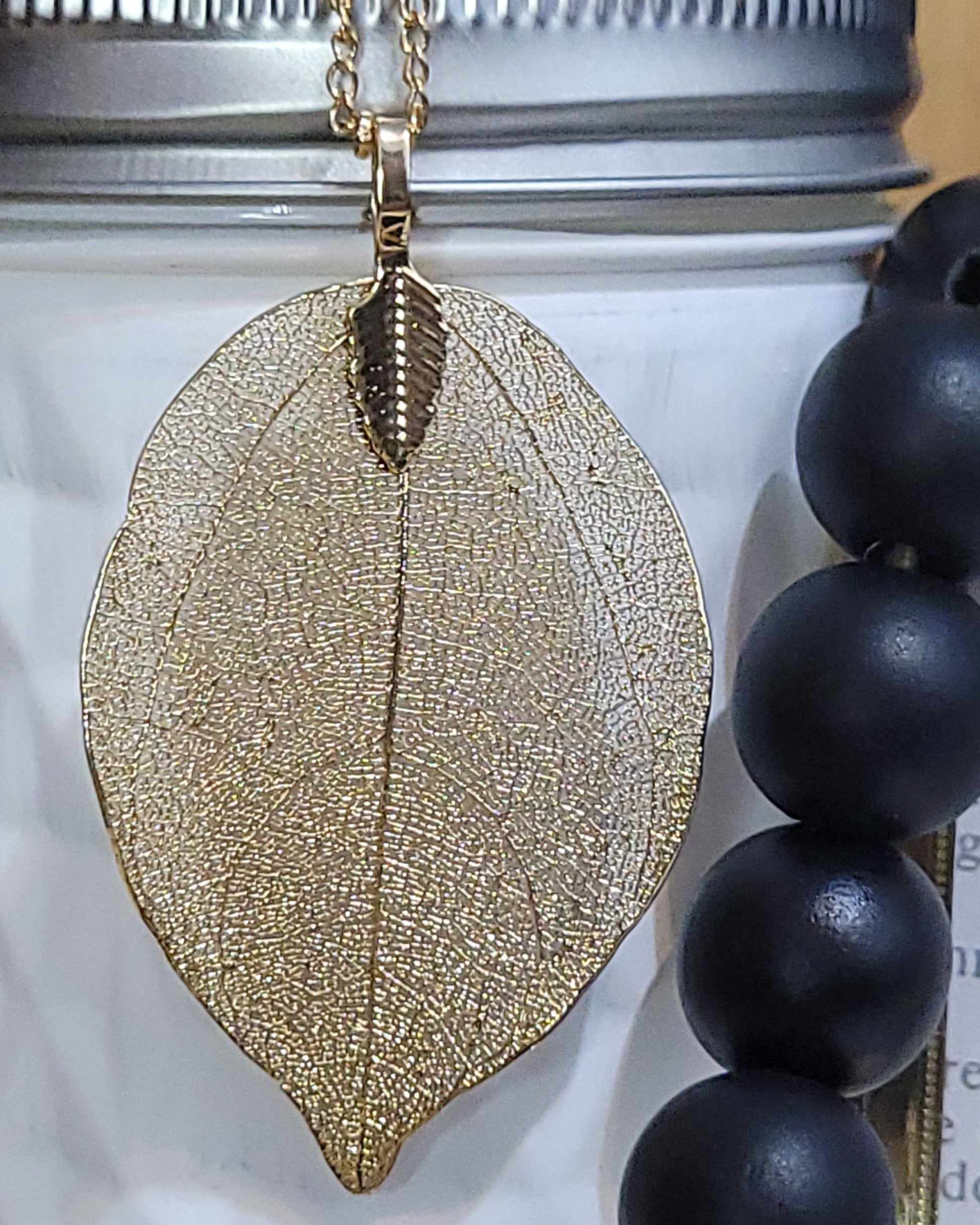 This exquisite piece of jewelry boasts timeless elegance and natural beauty. The delicate leaf pendant captures the intricate details of nature's foliage. Pendant hangs gracefully from a 70cm chain allowing it to be draped gracefully around your neck. It can be worn as a great statement piece or a symbol of grace and enchantment.