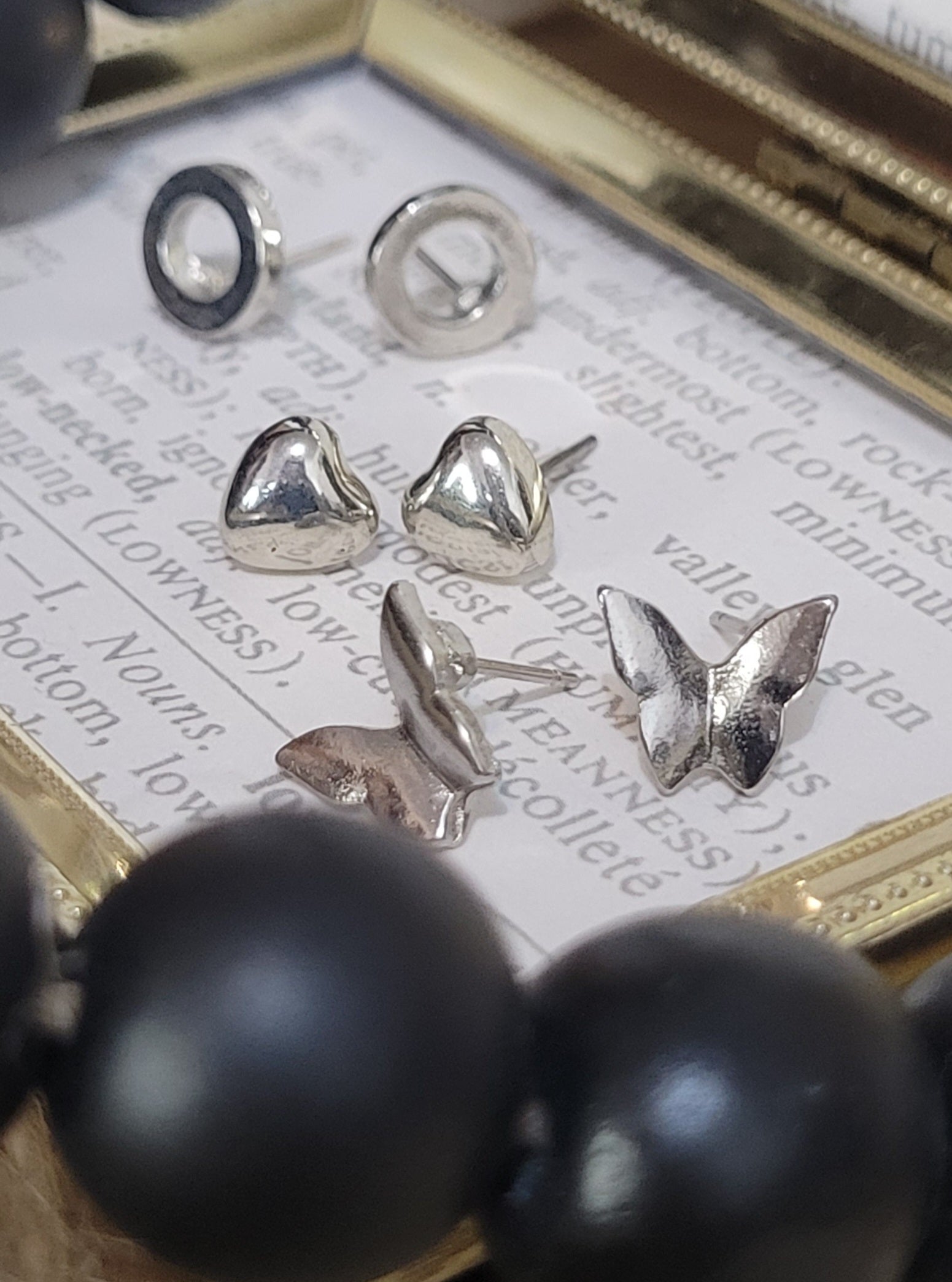 This set of three stainless steel earrings offers versatility & allows you to switch up your style effortlessly. Classic circle stud earrings exude confidence.  Heart studs bring a bit of romance.  Butterflies add that whimsey. A perfect addition to your jewelry box.