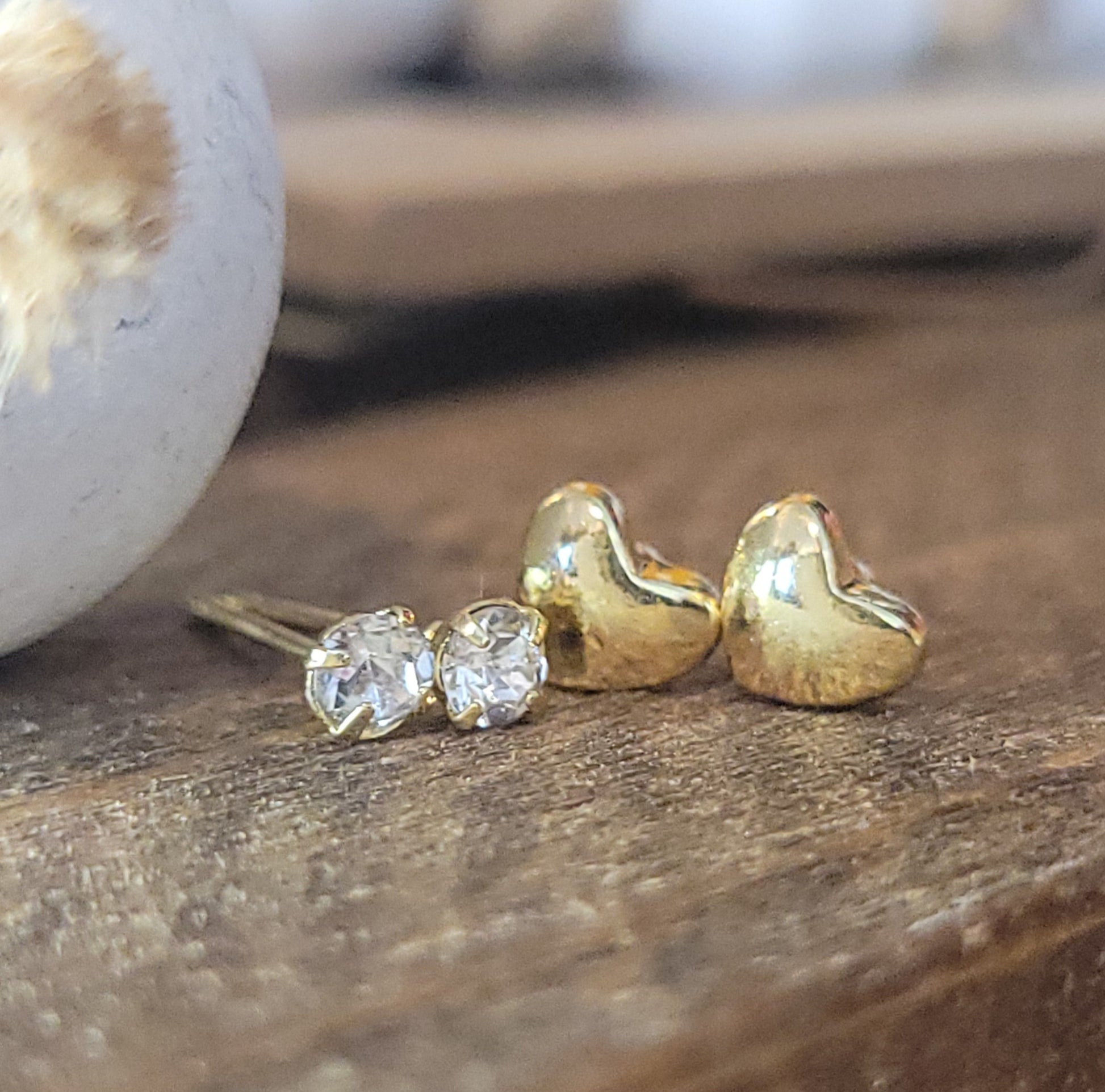 This combination allows you to showcase both romantic sentiment with the heart studs & a touch of vibrance and personal meaning with the gemstone studs. Hypoallergenic studs often crafted from materials such as surgical stainless steel and titanium.
